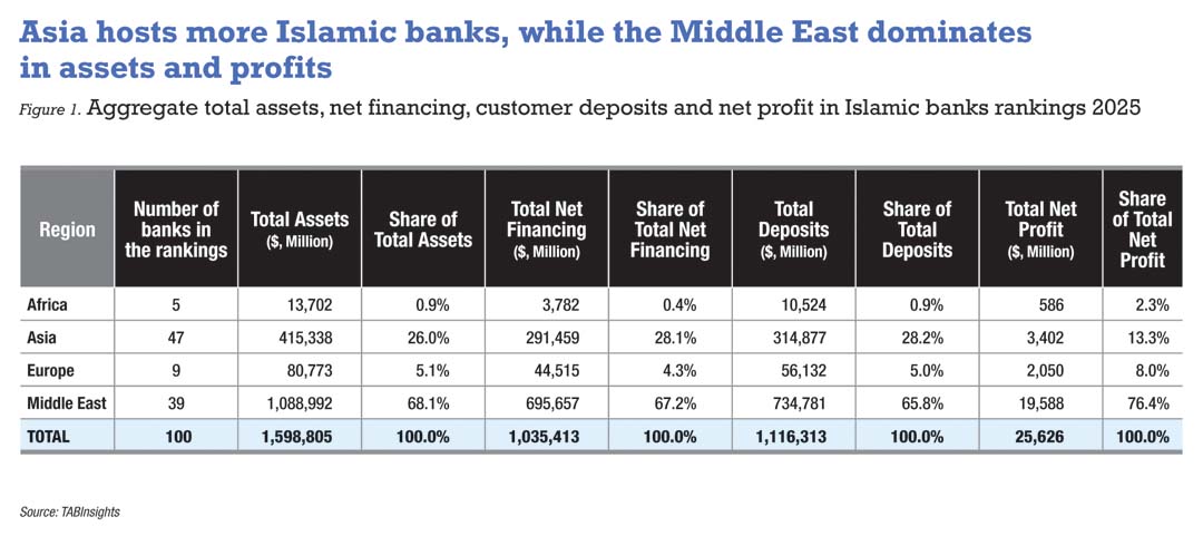 The TABInsights 2025 Islamic Banks Rankings underscore the resilience and growth of global Islamic banking. Middle Eastern banks, especially in Saudi Arabia, the UAE, Kuwait and Qatar, lead in scale, profitability and financial strength, while Asian markets, including Malaysia, Indonesia and Pakistan, are emerging growth hubs, expanding financial inclusion and market sophistication.